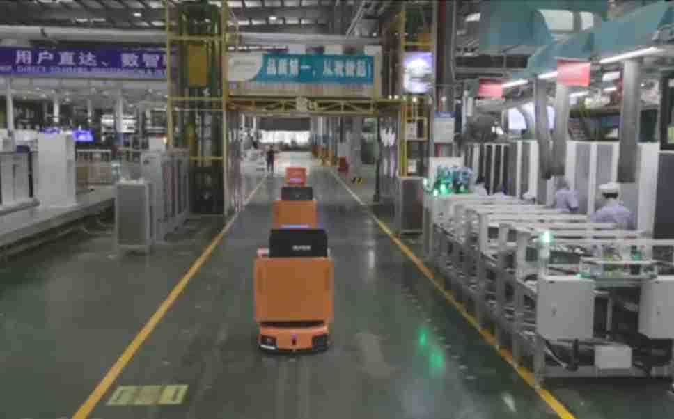 为车载冰箱物流配送打造的智能解决方案,,,包含产中物流通过潜伏举升AMR搬运至线边,,,产后成品物流智能仓储,,流程包含产中物流智能齐套入库,,,线边安灯叫料AMR智能配送至线边,,成品入库、、出库,,通过无人堆高车机器人,,智能仓储管理替代人工作业管理,,,实现更高存储、、更高效率、、更具柔性化的解决方案。。。。